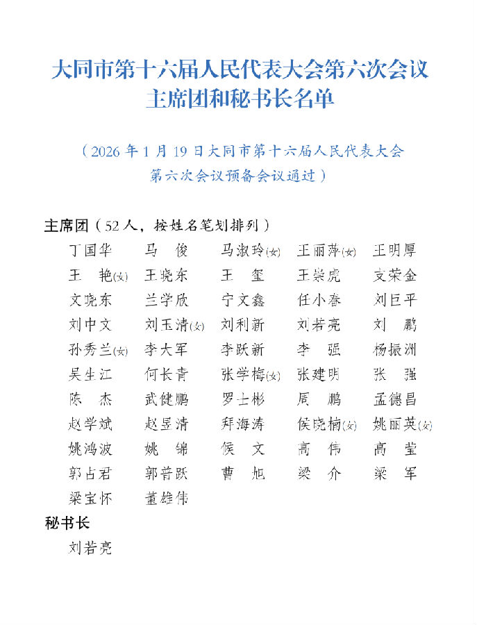 大同市人大常委会 发布时间:2026-01-20 10:06:29