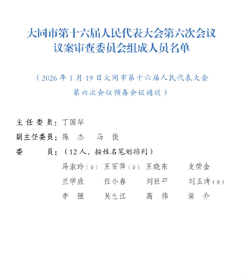 大同市人大常委会 发布时间:2026-01-20 10:11:08